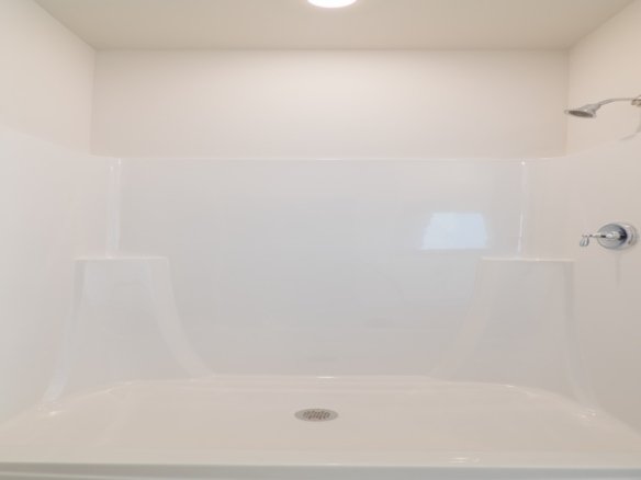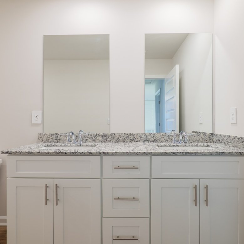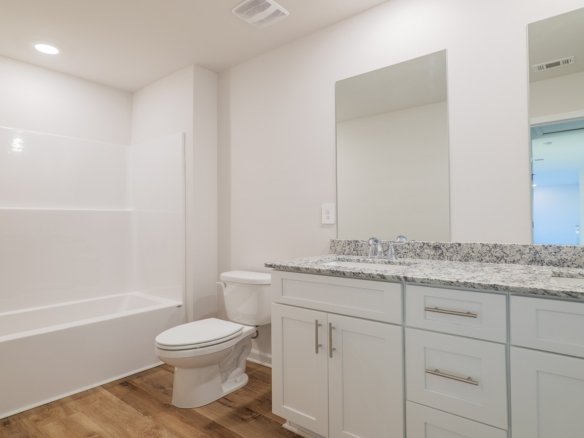 Primary Bath Double Vanity, Large Shower, Private Water Closet