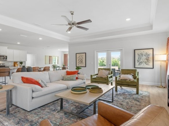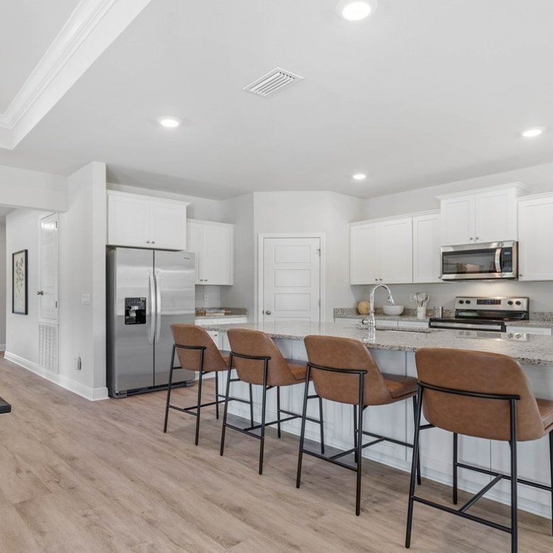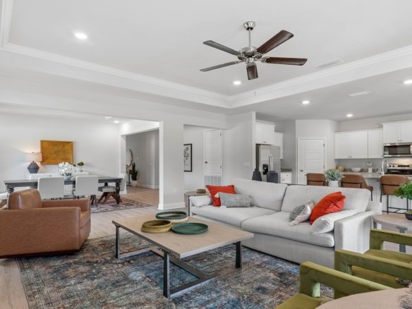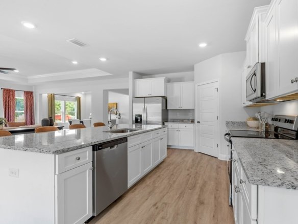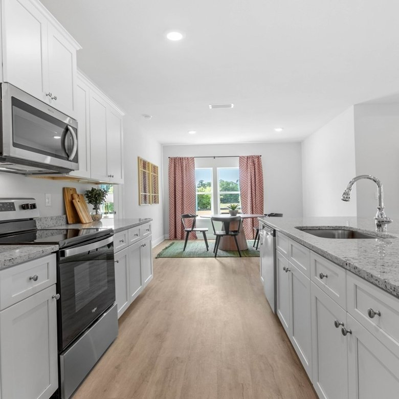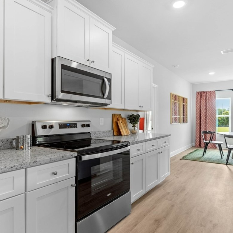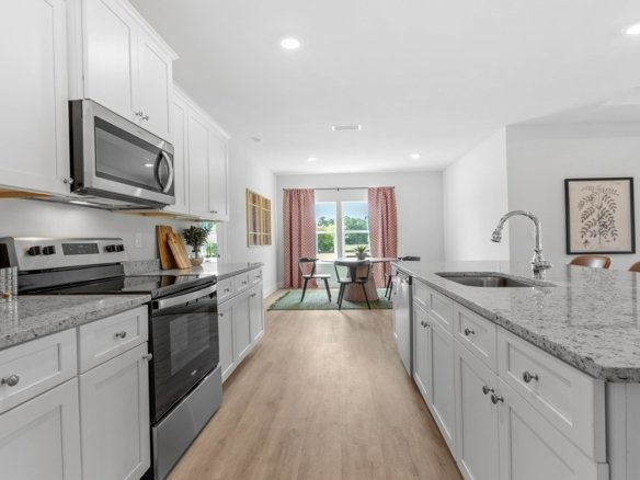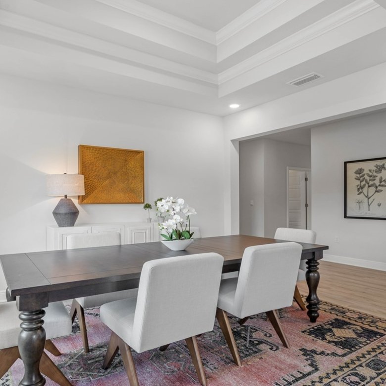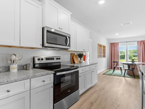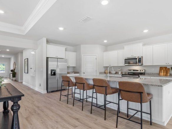 Entering into the heart of the home you and your guests will be impressed by the attention to detail and features, which include granite countertops, crown molding in the tray ceilings, and stainless-steel appliances. The chef-inspired kitchen opens into the large living room with an abundance of natural light. There is also a dedicated dining space and breakfast nook.