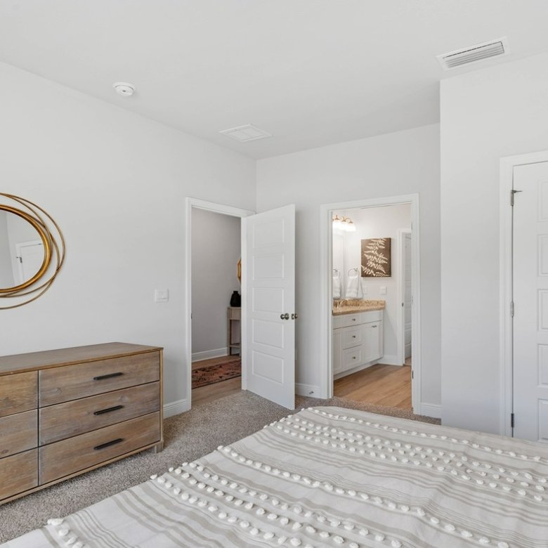 Upon entering your home, you will have two bedrooms and a bathroom off the entryway. Further down the hall is the study/flex space that can be the perfect mother-in-law suite with its own full bath, bedroom and the separate living space.