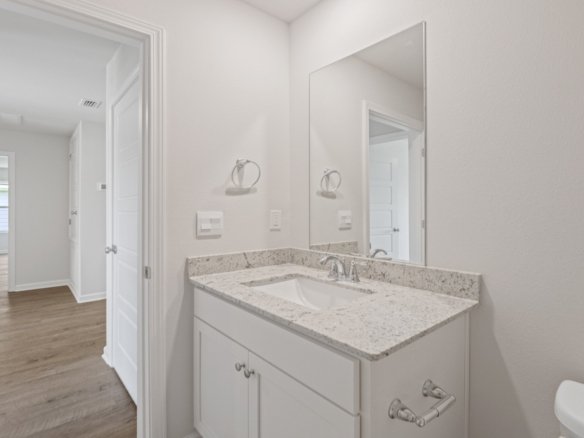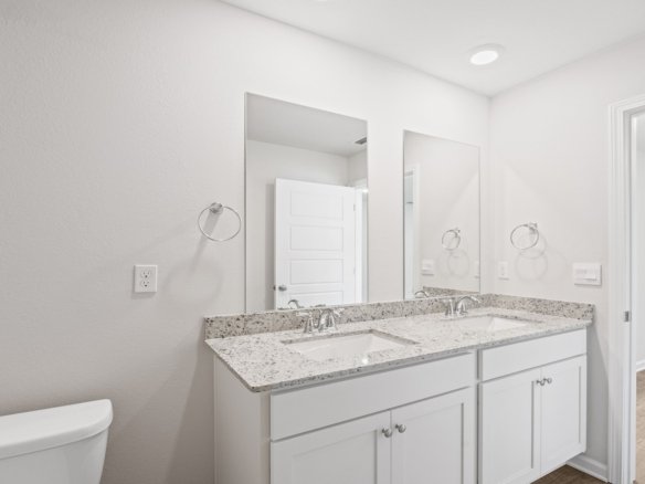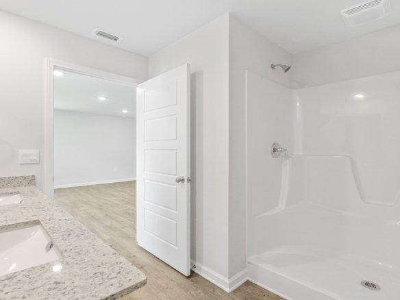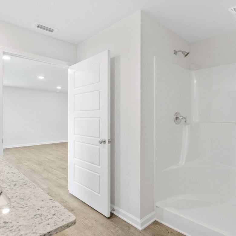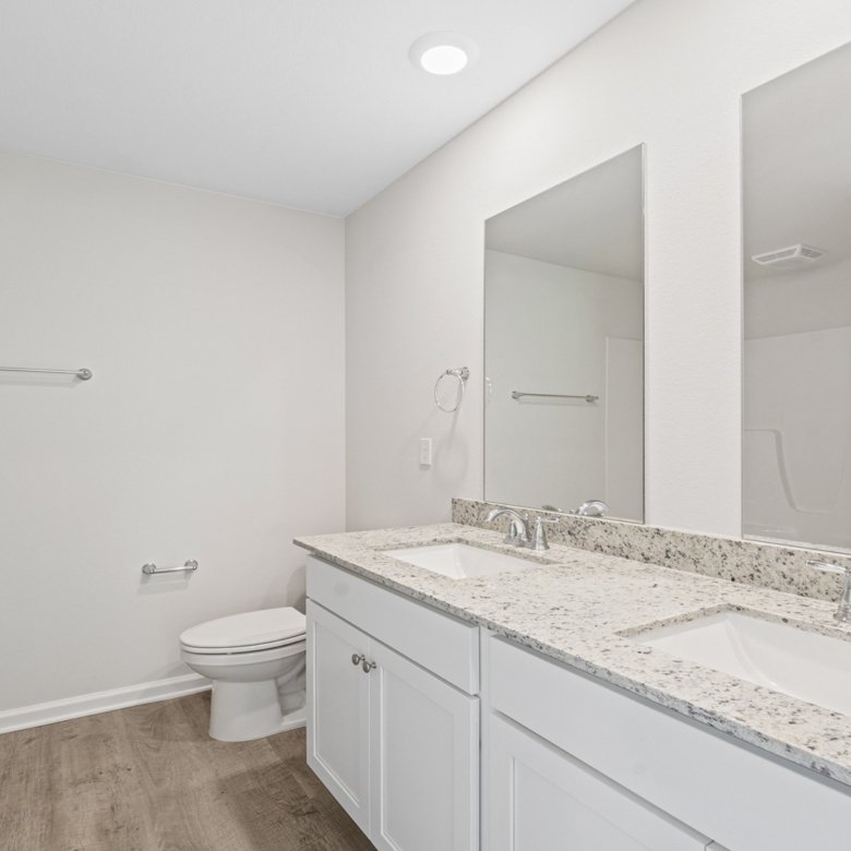 Your primary bedroom is in the back of the home, giving you a private space. The en suite bathroom has double vanities and a large shower. The primary suite is complete with an oversized walk-in closet.