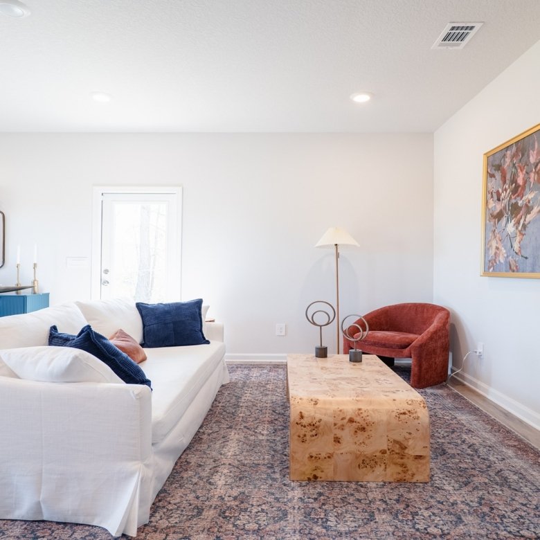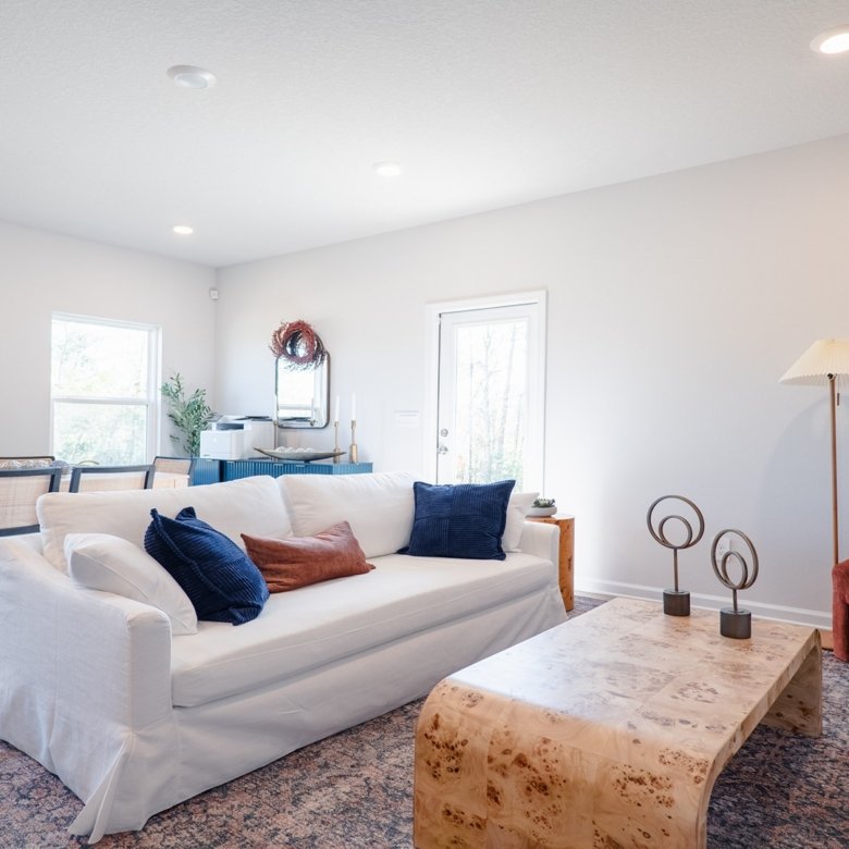 Living Area Open Concept, Dining + Sitting Space